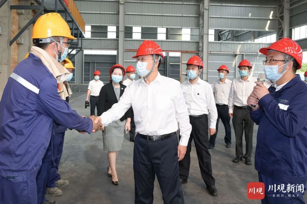 王曉暉書記深入杉杉眉山20萬噸鋰電池負(fù)極材料一體化基地項(xiàng)目建設(shè)現(xiàn)場,察看企業(yè)設(shè)備調(diào)試及試生產(chǎn)情況,聽取企業(yè)客戶、車間建設(shè)和技術(shù)儲(chǔ)備情況介紹,并親臨石墨化車間看望慰問項(xiàng)目建設(shè)一線勞動(dòng)者,叮囑他們注意防暑降溫,防范高溫安全風(fēng)險(xiǎn)。
