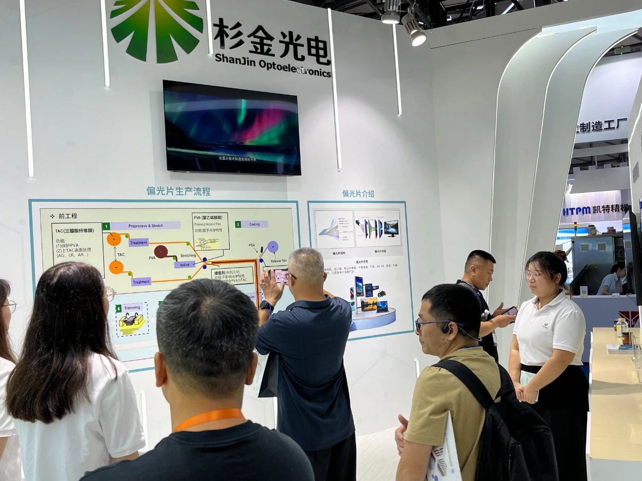 杉金光電總裁朱志勇受邀出席展會(huì)開(kāi)幕式并剪彩此次參展,杉金光電帶來(lái)了高端LCD偏光片、OLED偏光片、中小型偏光片、環(huán)保型溶劑等領(lǐng)域的多項(xiàng)極具競(jìng)爭(zhēng)力的產(chǎn)品,還設(shè)立了偏光片互動(dòng)體驗(yàn)區(qū),讓觀眾更加清晰、直觀地了解到偏光片的功能和成像原理,吸引了眾多觀眾駐足。